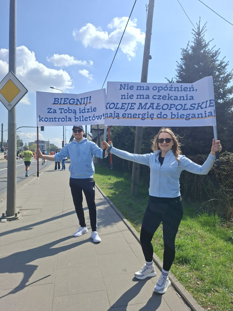 Naszym zawodnikom towarzyszyło także wyjątkowe wsparcie – obecni na miejscu kibice zadbali o głośny doping oraz kreatywne hasła, które dodawały energii na kolejnych kilometrach trasy. Ich zaangażowanie po raz kolejny pokazało, że Koleje Małopolskie to nie tylko codzienna praca, ale także wspólnota, aktywność i wzajemne wsparcie.